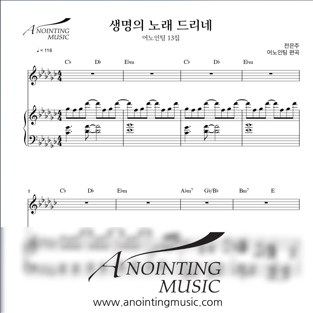 생명의 노래 드리네_G♭(원곡)_메인&세컨건반 악보[PDF]