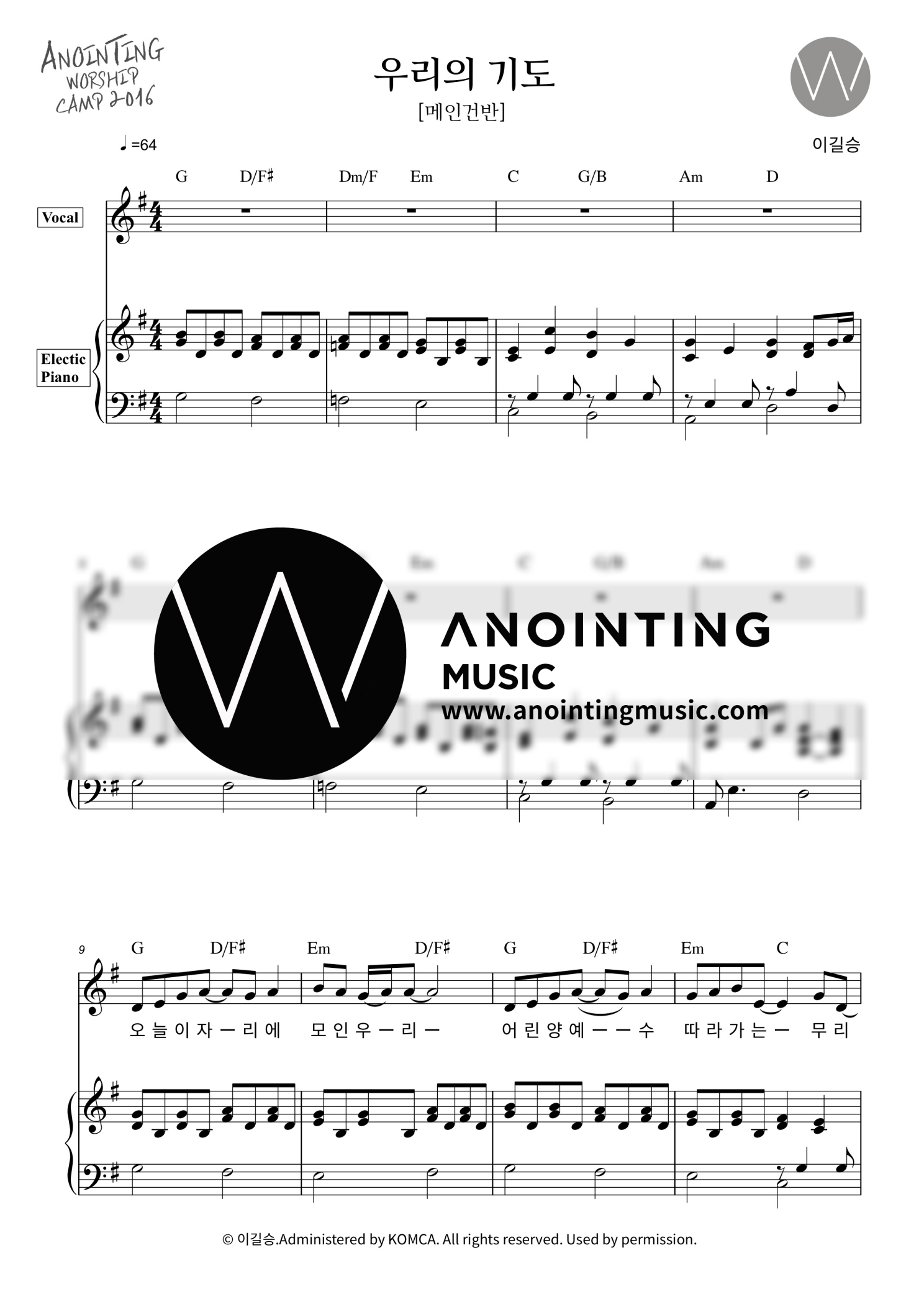 우리의 기도_메인&세컨건반 악보[PDF]